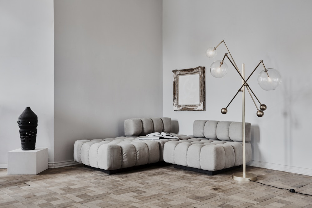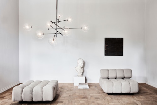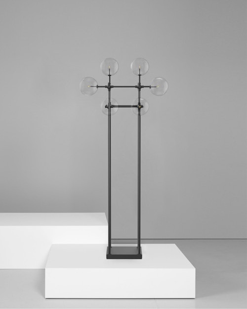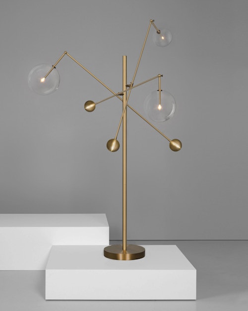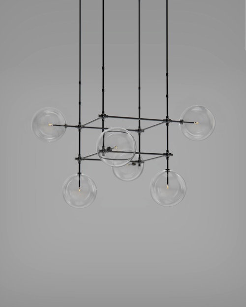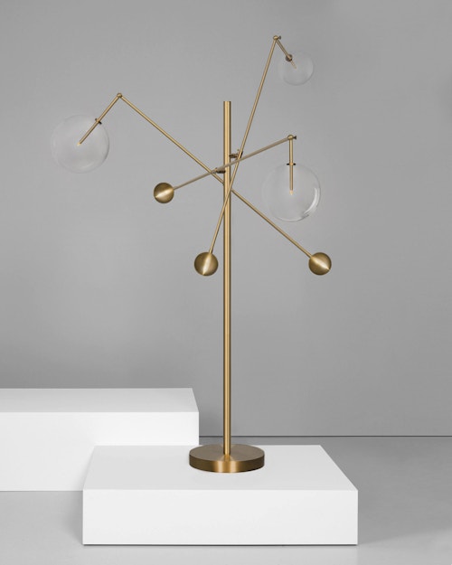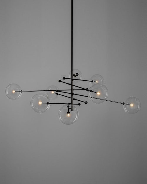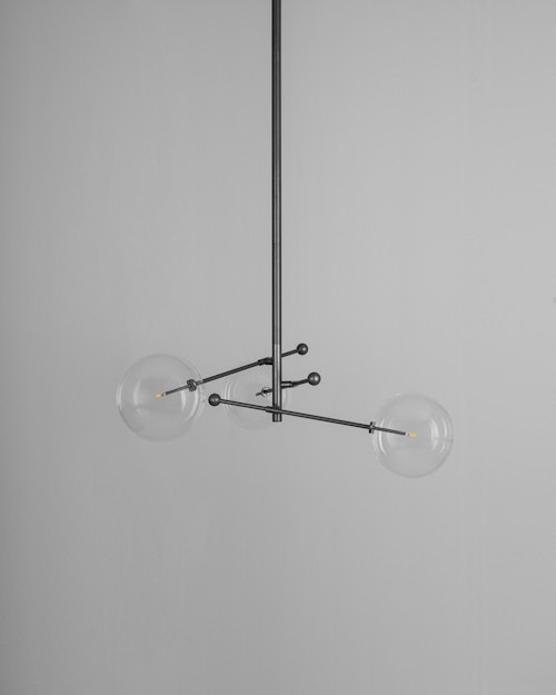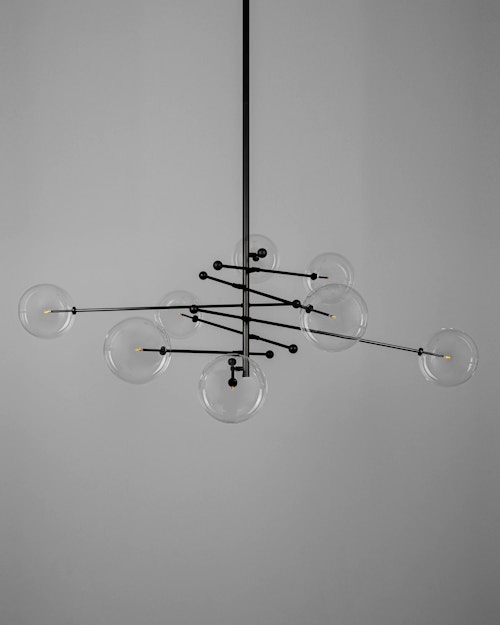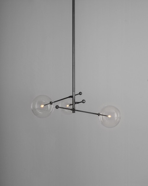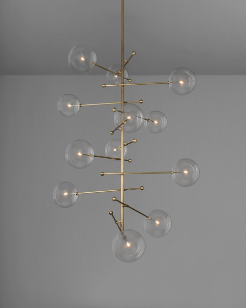 Striking illuminated arrangements, the Schwung Classics are constellations of brass and glass. Carefully crafted in Poland, the precision of shape and material amplifies their arresting crisp quality of light. Made in the tradition of Bohemian glass, with its lineage in Central Europe for over a century; highly durable borosilicate glass is blown into thin, durable transparent globes, intensifying minimal brass fixtures with an irresistible sparkle.