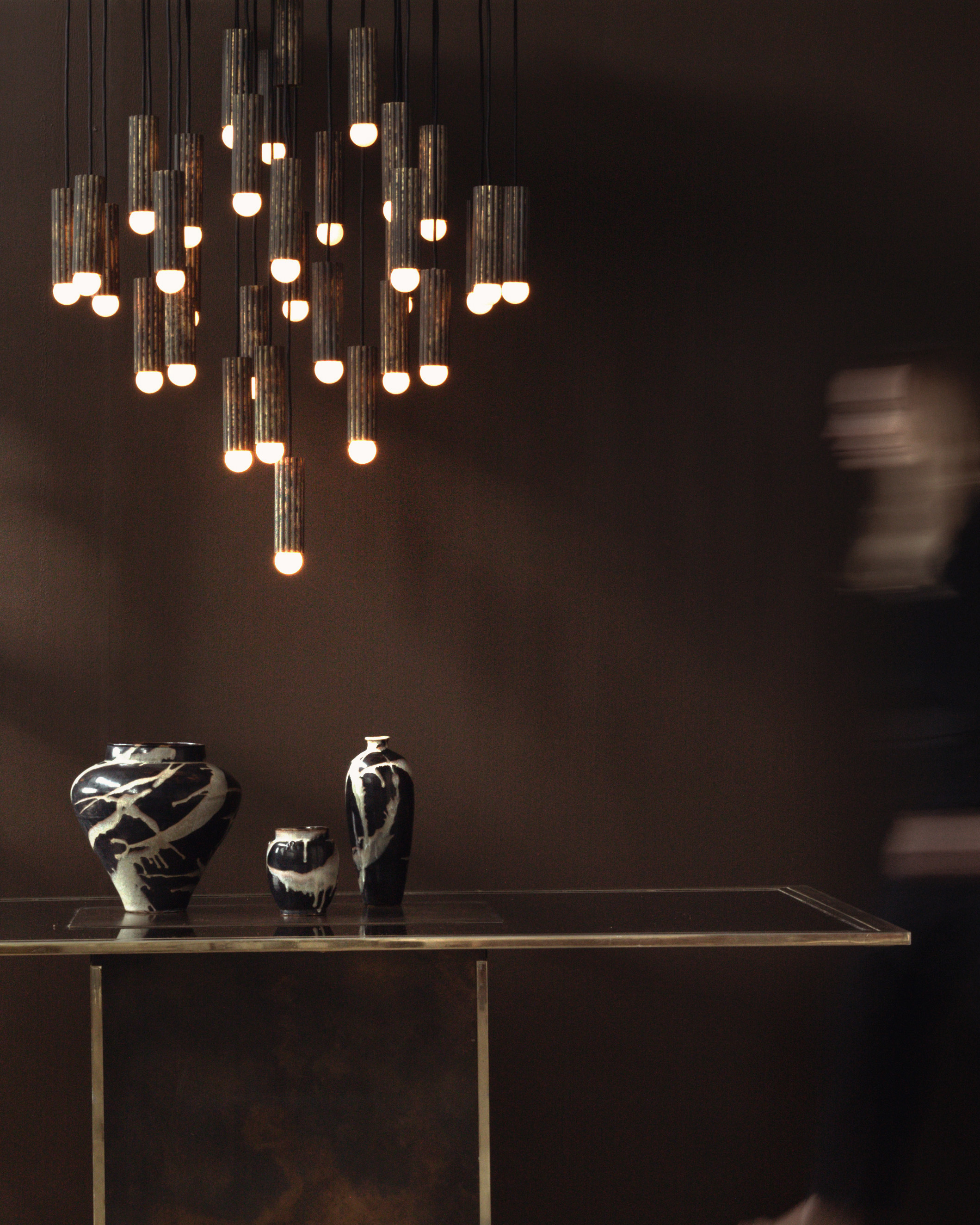 Named after Vesta, the Roman goddess of the hearth and guardian of flame. Once, the hearth meant far more than warmth: it embodied ritual, gathering, and memory. In today’s interiors, the collection evokes the symbolism of fire as the true heart of the home, where light becomes a source of atmosphere, presence, and story. Each form is a study in sculptural tension: vertical cylinders echo the columns of ancient temples, capturing rhythm and structure, while subtle fluting recalls the draped garments of a distant age. The result is lighting that draws on classical codes yet remains unmistakably contemporary, architectural, refined, and quietly powerful.