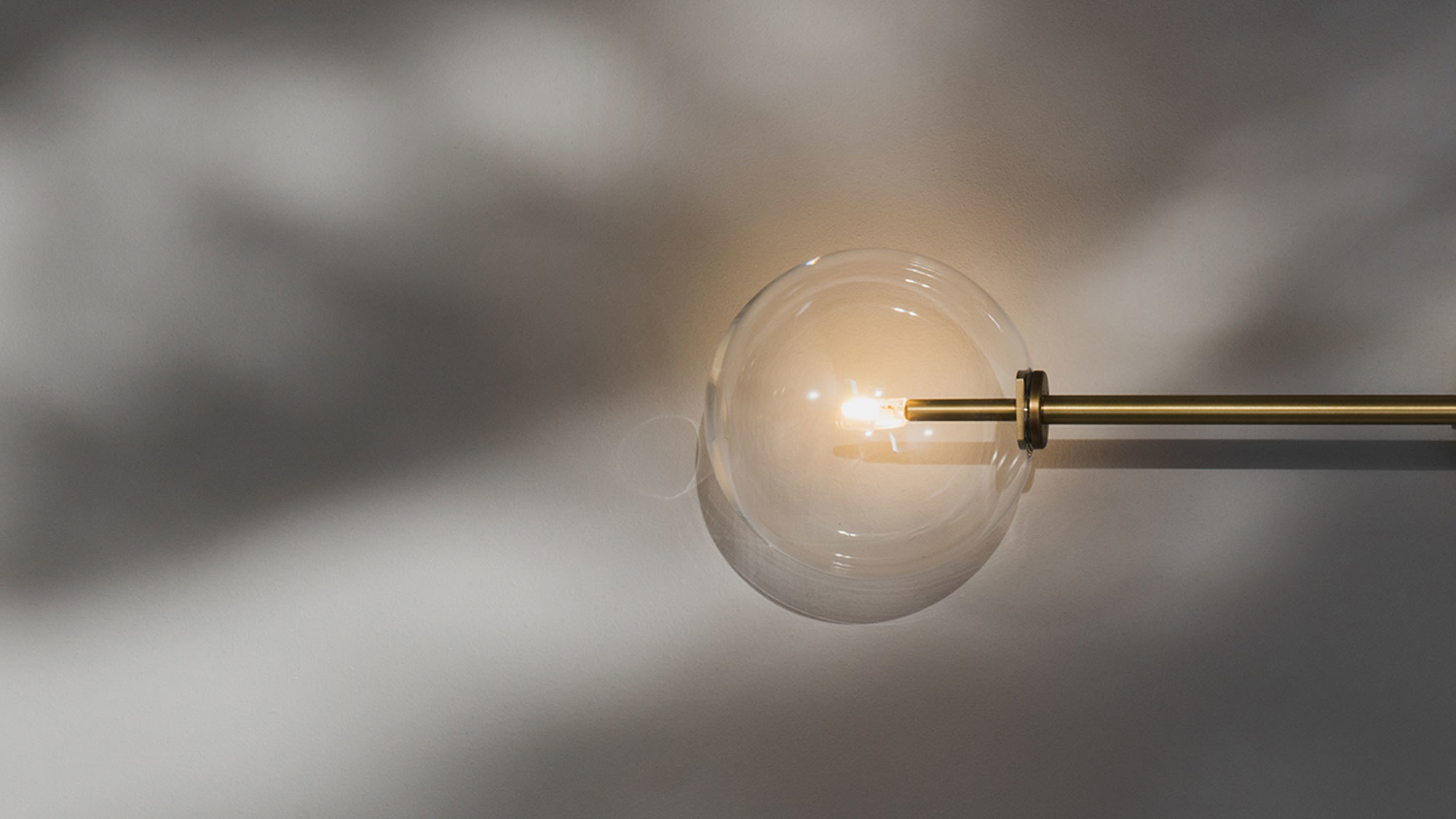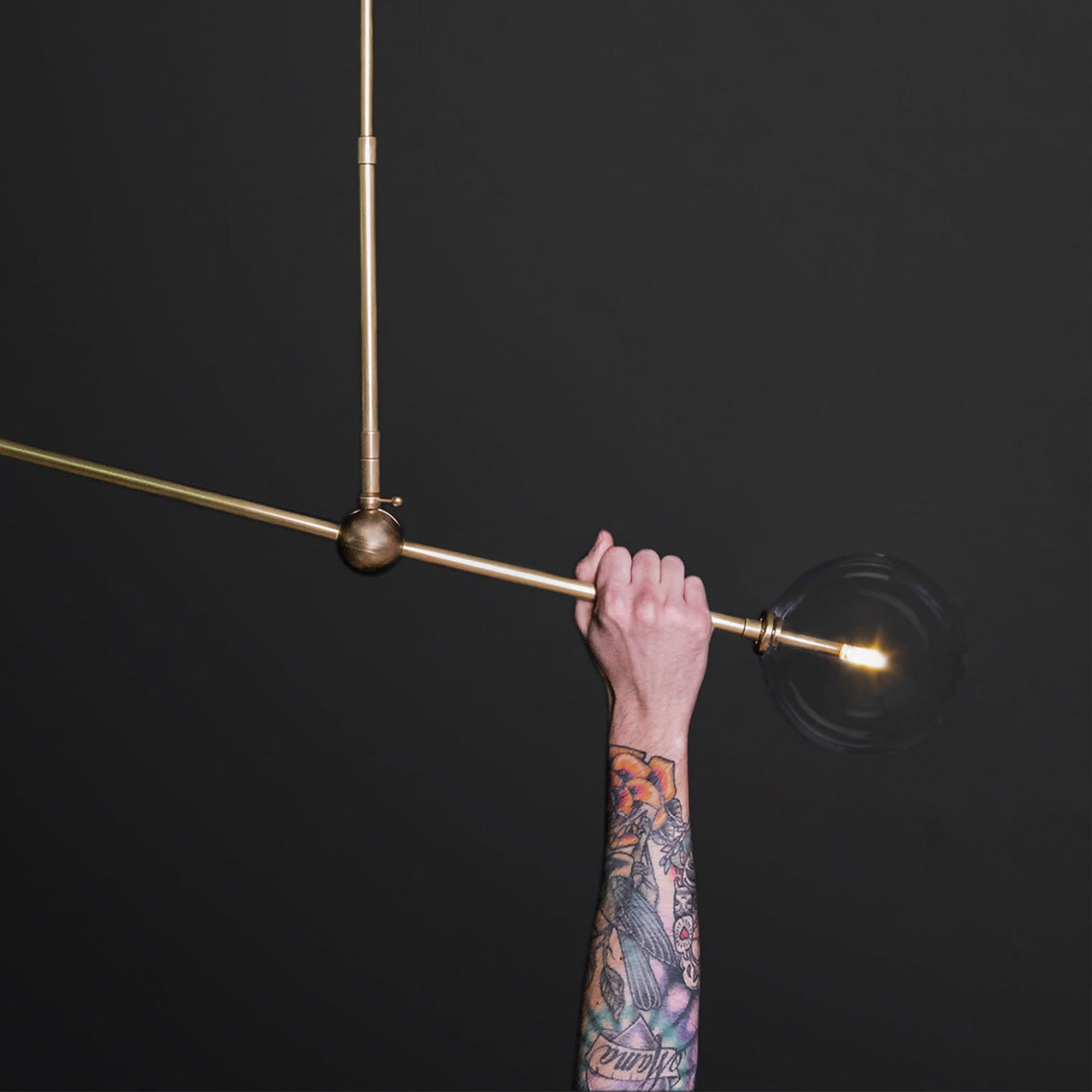 The Balance 200x150 pendant imagines harmony as a process, symmetry in motion balancing the forces of dynamic spaces. The pivoting axis creates motion in a harmonious equilibrium between two different sizes of mouth-blown glass spheres- a visual melody, adjusting to every audience.