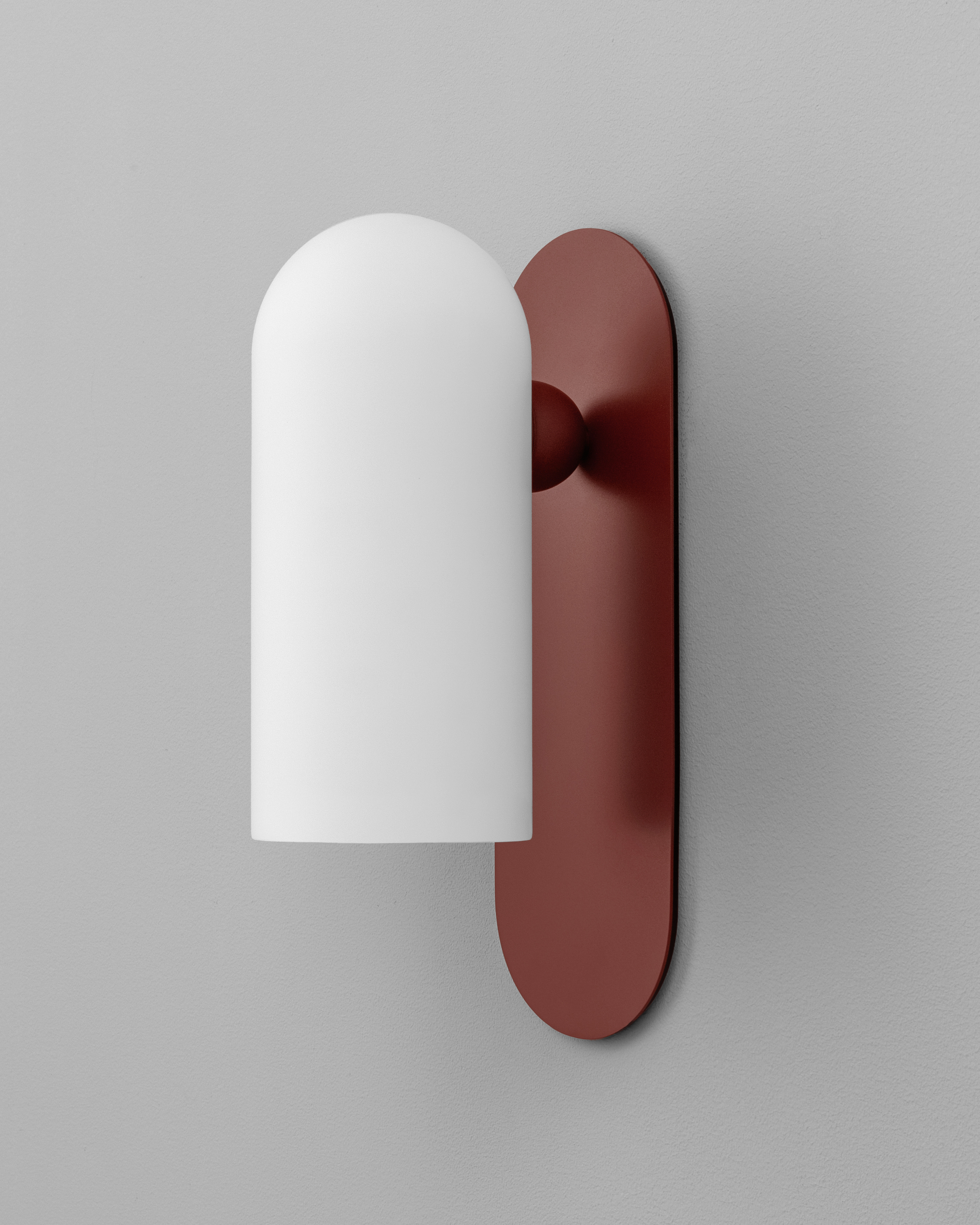 A colonnade of light sources. This delicate engine of frosted glass generates a luminous environment while contrasting brass elements create a sense of stability.
