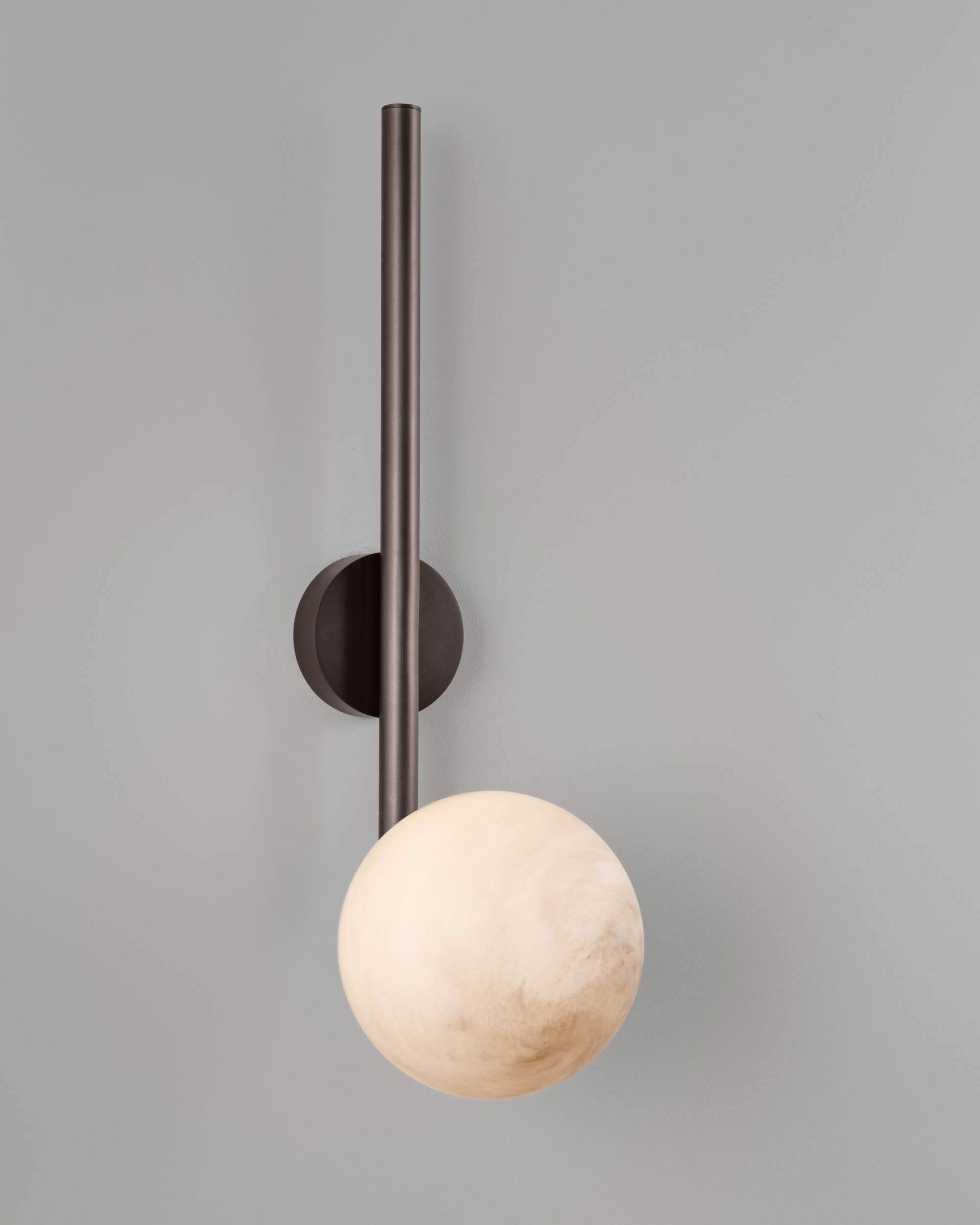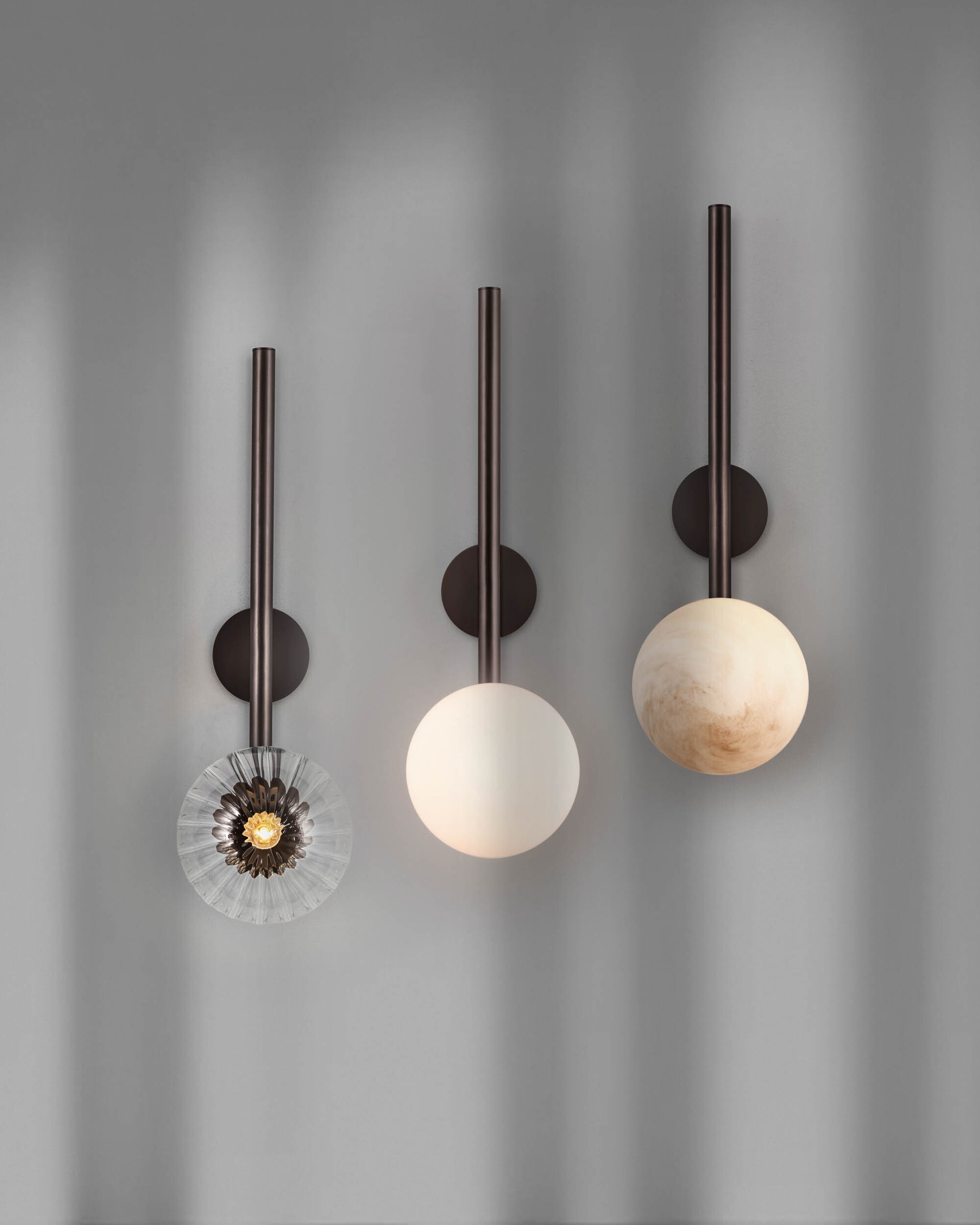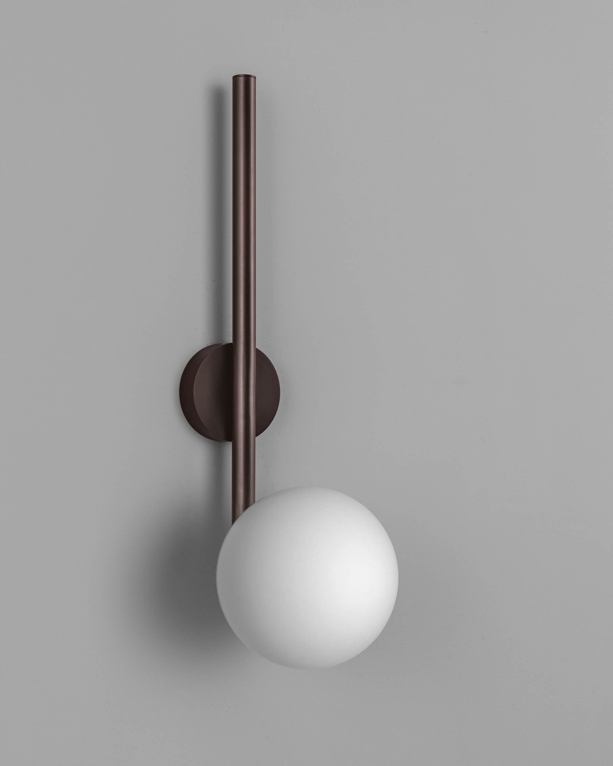 Even solitary, coherence resides in the line. The Tubular Sconce LD distills this graphic principle of the early modernists into a fixture; a solid brass arm extends from the wall, curving deftly to cradle a single, glowing sphere of opal, marble, or clear ribbon glass.