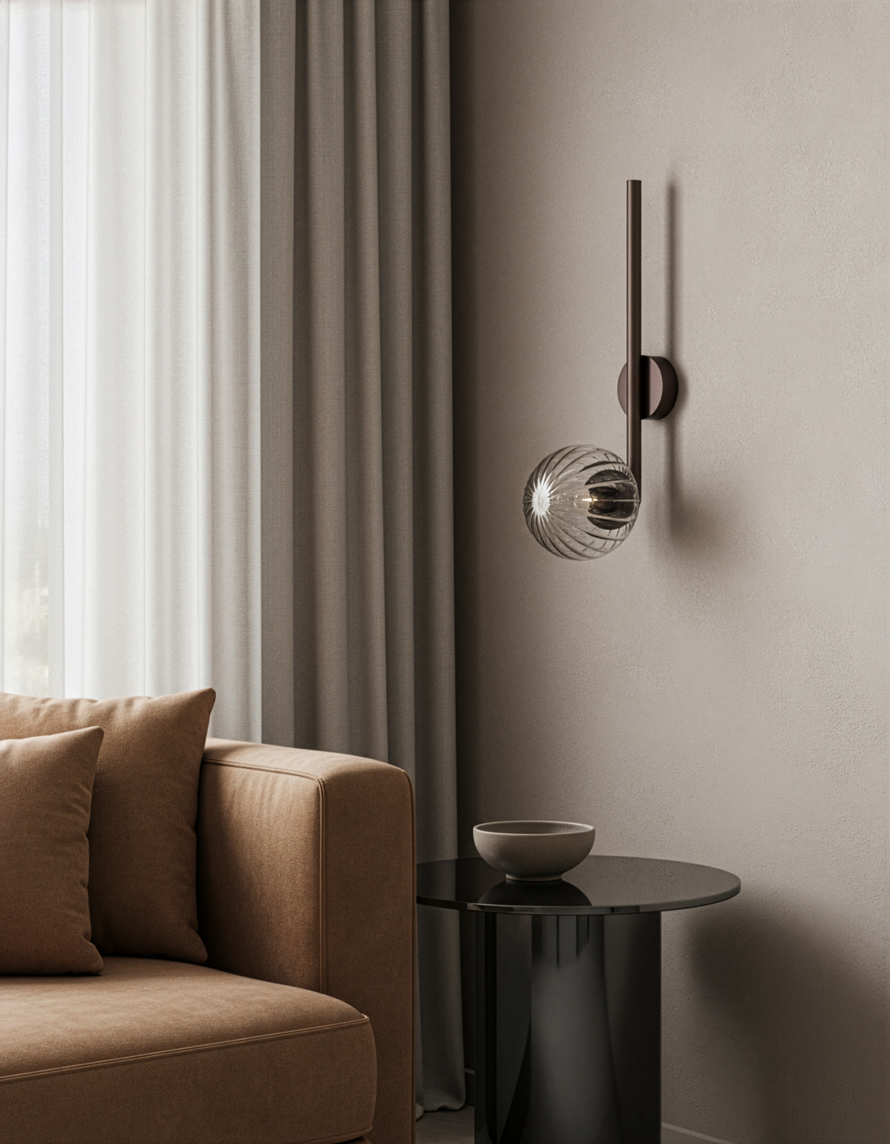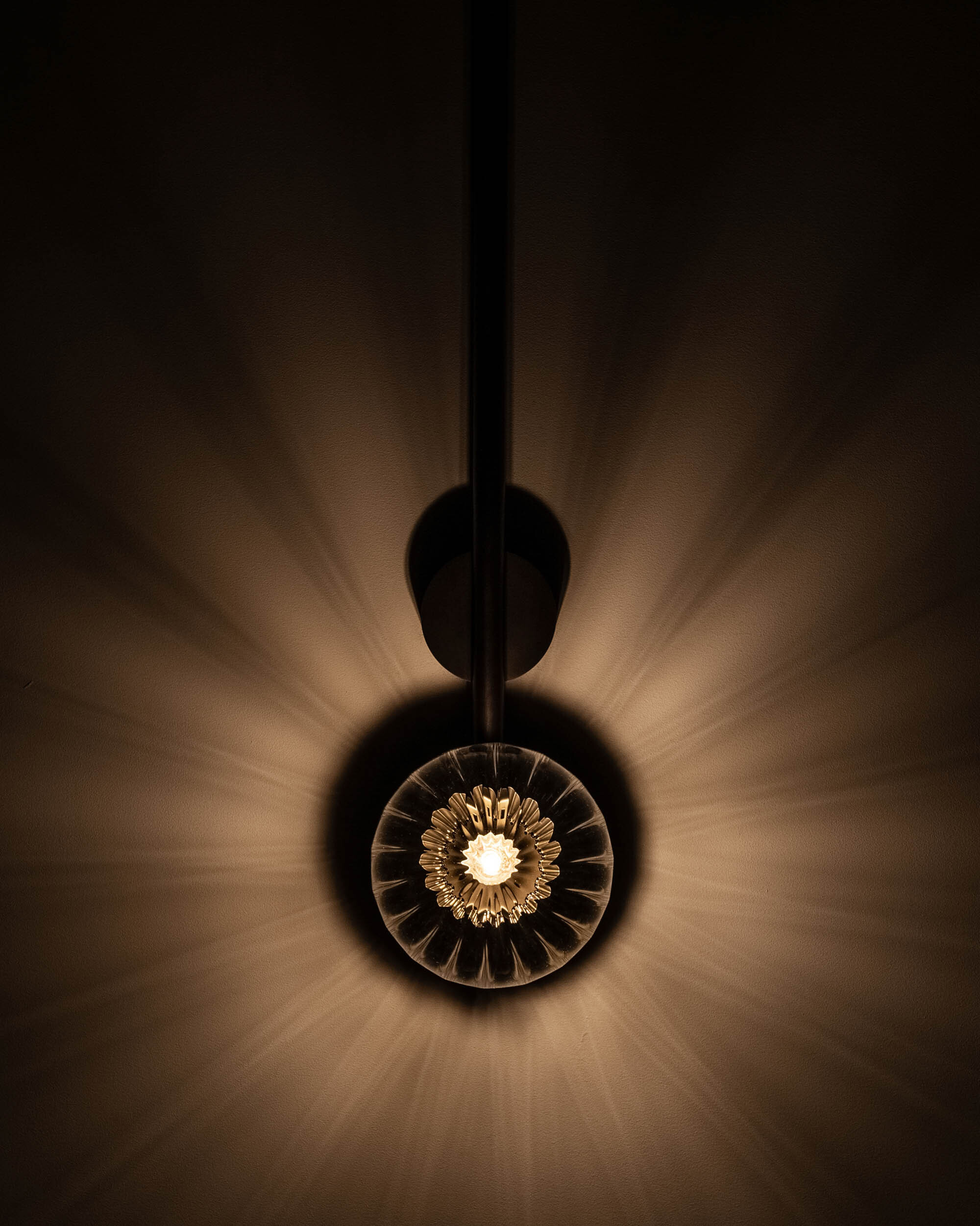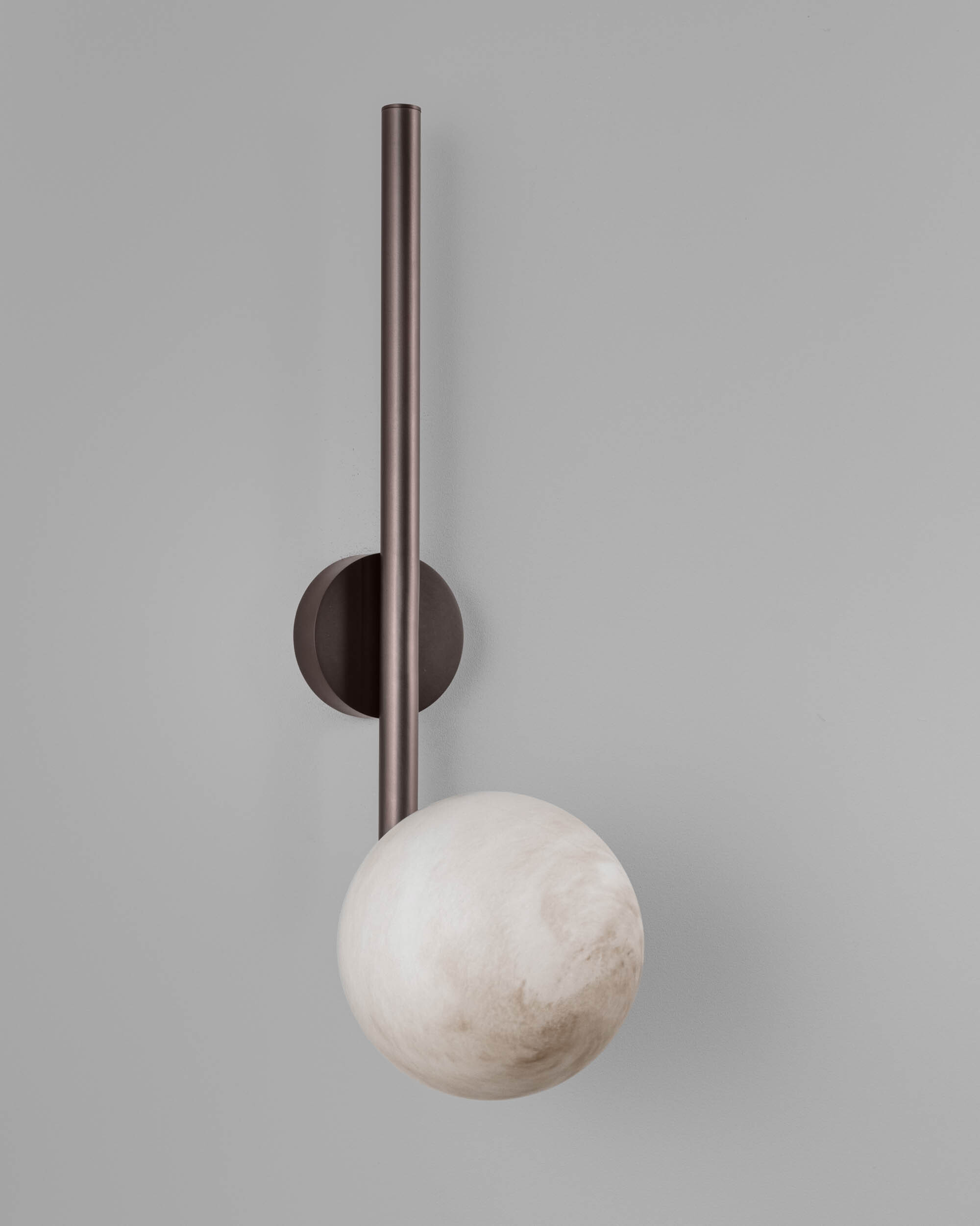 Even solitary, coherence resides in the line. The Tubular Sconce LD distills this graphic principle of the early modernists into a fixture; a solid brass arm extends from the wall, curving deftly to cradle a single, glowing sphere of opal, marble, or clear ribbon glass.