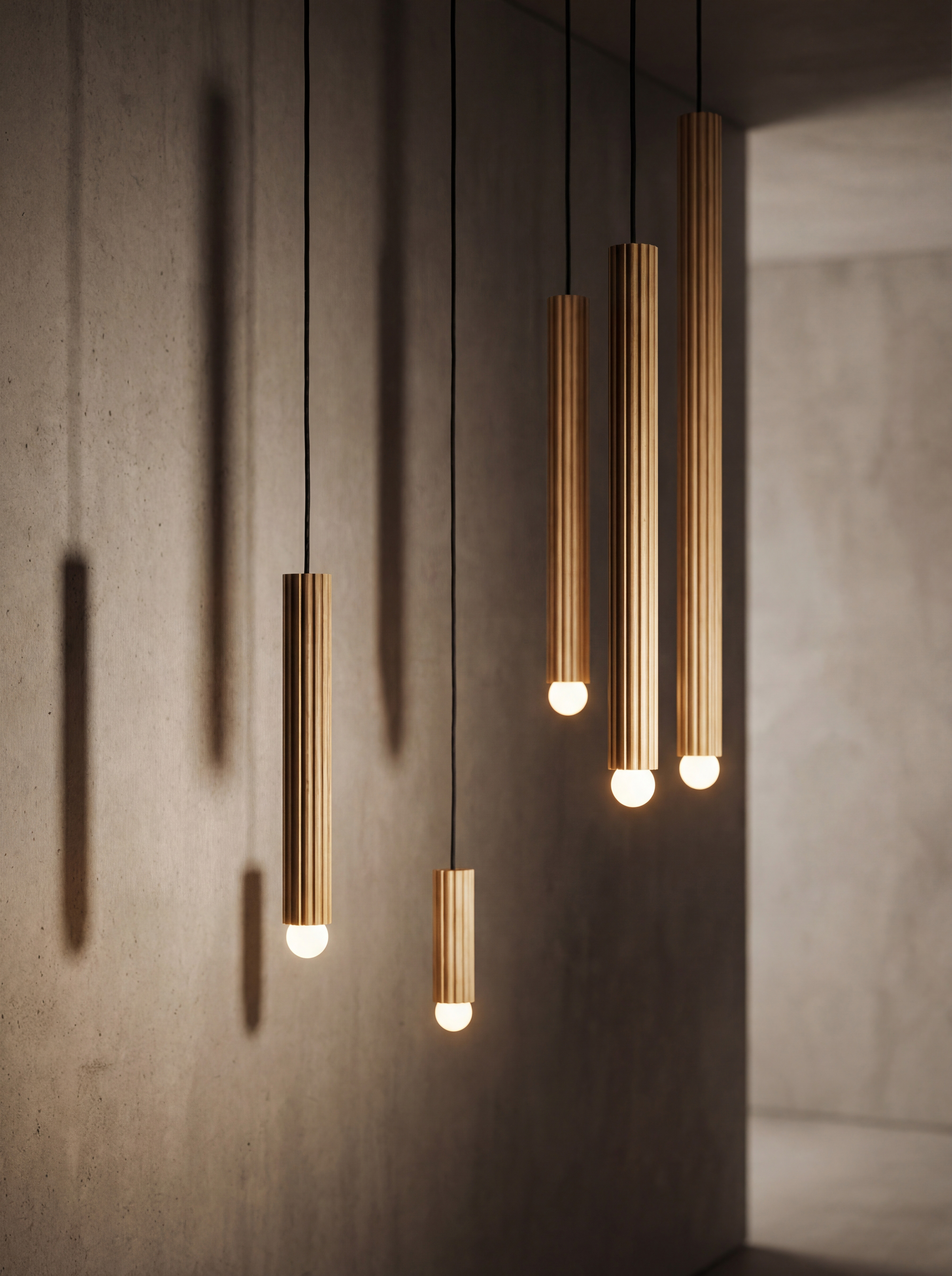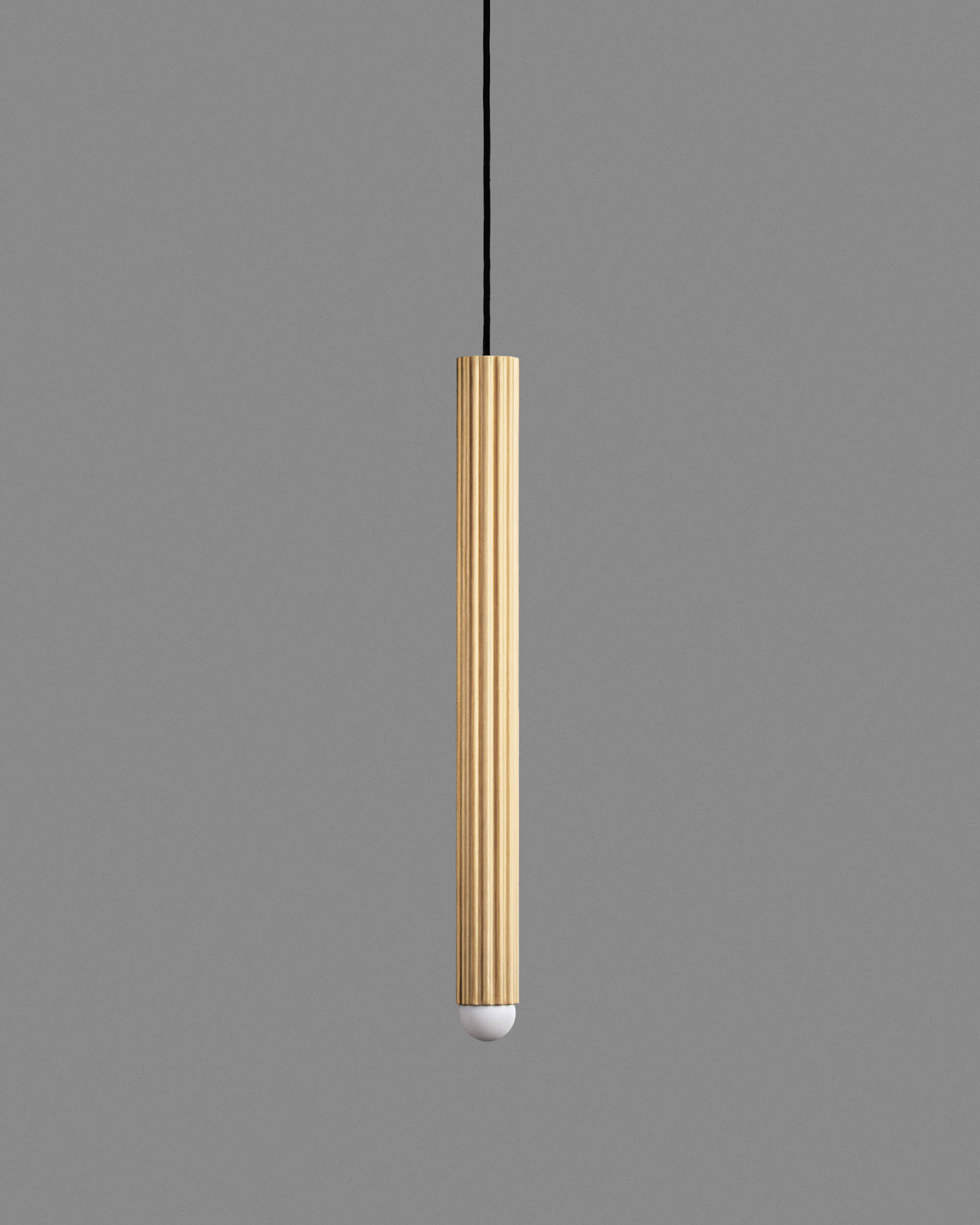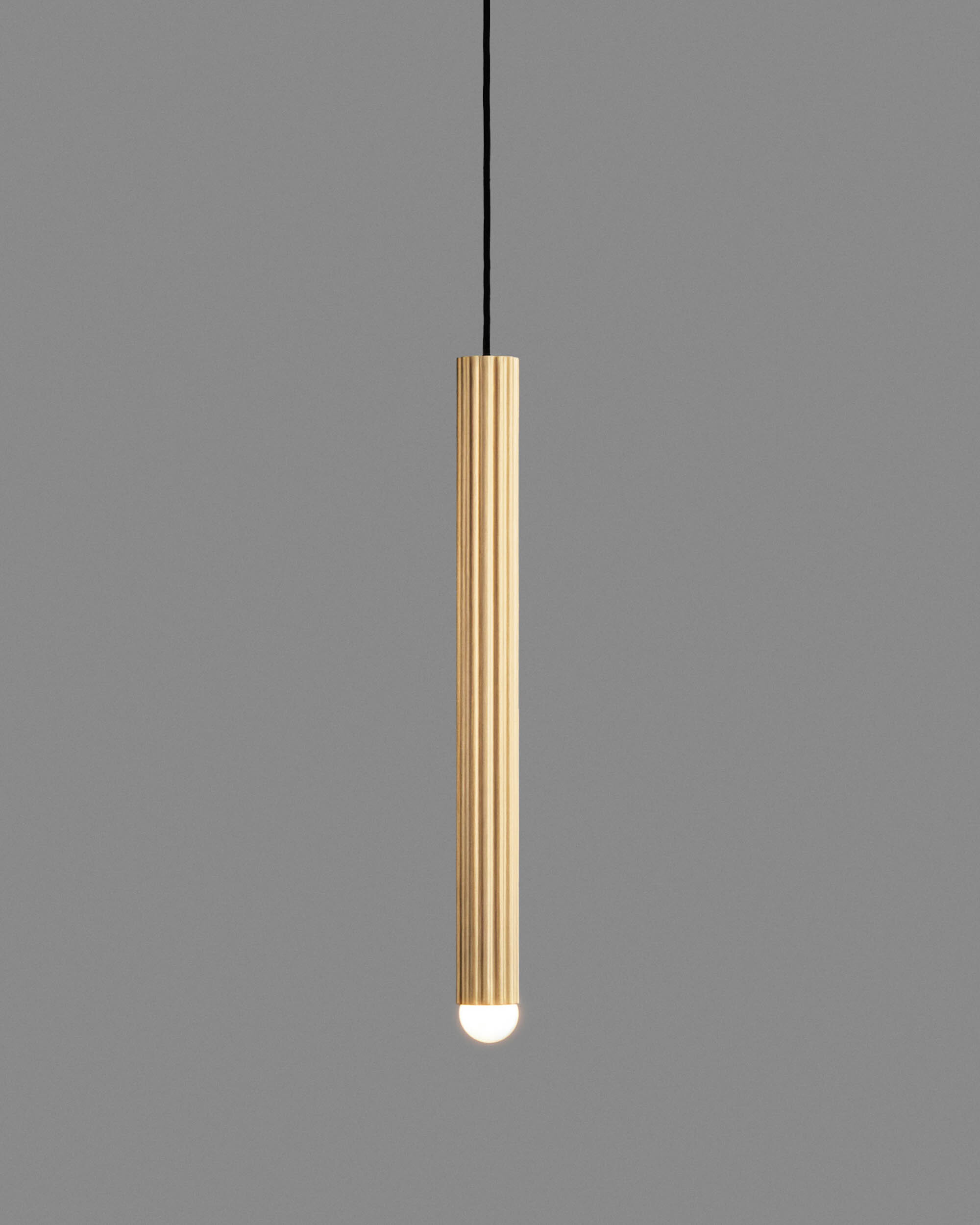 A pronounced, poised confidant. The elongated brass tube drops its light into a distinct column.